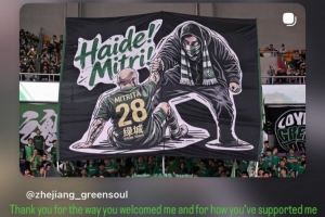 體育資訊4月18日訊 中超第6輪,浙江隊主場0-0戰平北京國安,本場比賽前浙江隊球迷打出TIFO,聲援被停賽的外援米特里策。