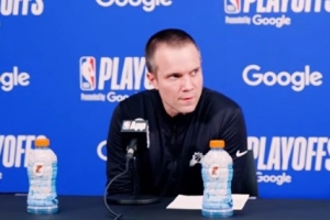 記者問:“最后一個問題。教練,你能談談情緒上的轉變嗎?周五晚上戰勝勇士是一場情緒激昂的勝利,然后進入這場比賽,這是你們的第一場季后賽,你能談談在周三的比賽前如何重新調整,讓隊員們準備好嗎?”