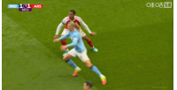 第67分鐘,加布里埃爾貼身防守哈蘭德,將其衣服撕裂: