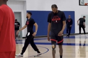G2能否復(fù)出?杜蘭特參加火箭訓(xùn)練加練投籃 右膝貼滿(mǎn)護(hù)具